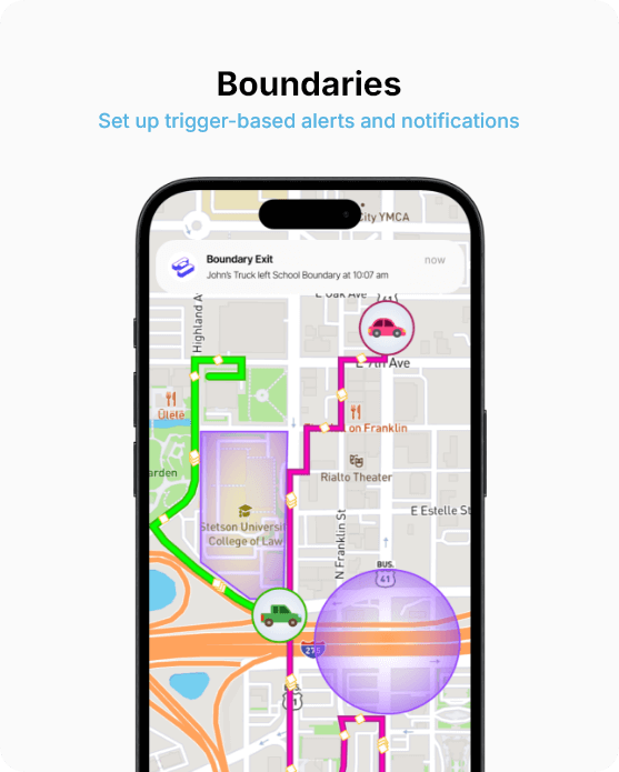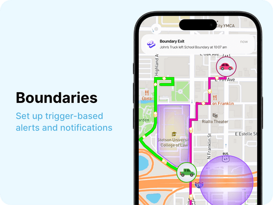 Receive alerts when a tracker enters or exits a designated area.